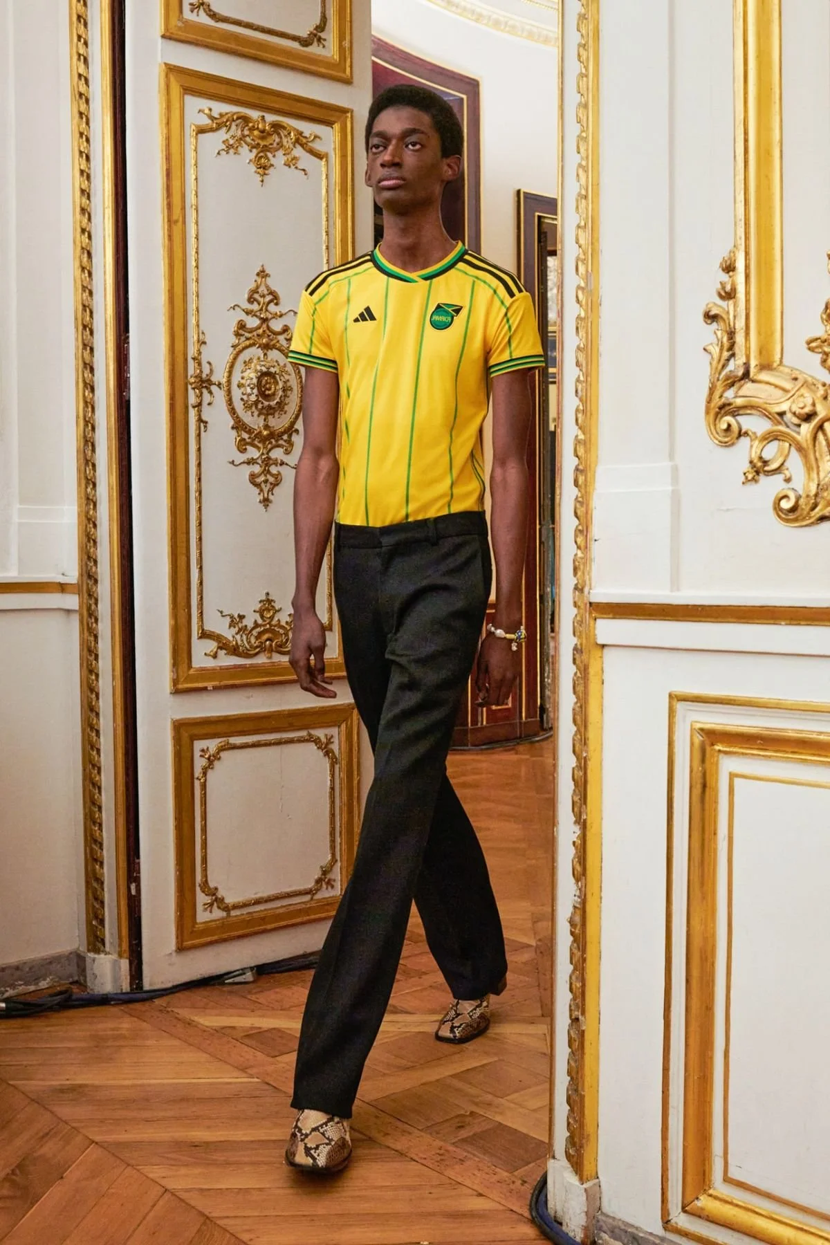What started on the field has now walked its way onto city streets and designer look books. Jerseys became layering pieces, tucked into tailored pants, or styled with designer sneakers and loafers. High fashion quickly jumped on the jersey fandom; brands like Louis Vuitton, Supreme, and Palace turned jerseys into cult-like objects, both appreciating and appropriating the style. Only some designers have captured the essence of jersey fashion quite exceptionally; ironically, those are women owned brands Wales Bonner and Martin Rose from the UK.