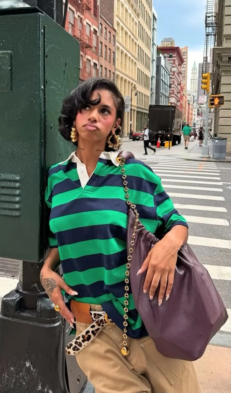 In street style, the message is even clearer. Women aren’t borrowing from menswear anymore, they’re rewriting it. The stripe becomes a statement of confidence rather than conformity. The collar frames power, not prep. This evolution reflects a broader cultural move; women choosing garments with history and weight, then bending them to fit personal narratives rather than inherited rules.