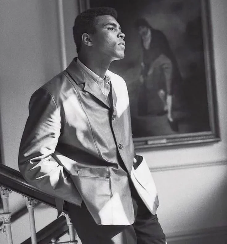 Ali redefined and re-owned professional and sports attire. He made his clothes fight as hard as he did. His robes were armor, wrapped in pride and power. Off the clock, Ali kept that same energy. Sharp suits, bold ties, and a walk that said, I belong here. Muhammad Ali never played a part when he told the world who he was.